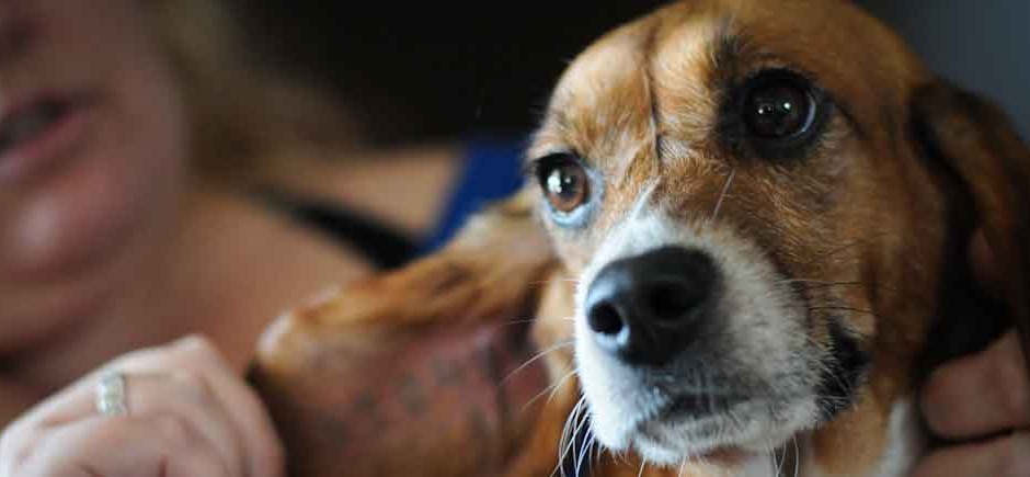 The photograph above is taken by Jo-Anne McArthur. Maggie was bred and used for research and now lives in a loving home. Her story features prominently in The Ghosts in Our Machine. .