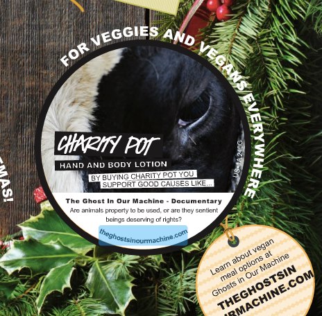 Another highlight from this past month, and my personal favorite, was the unveiling of the latest LUSH Charity PotsThe 5-Day Ghost-Free Journey is one of the featured projects supported by LUSH and Fanny is on the lid! If you have been following the Ghosts project, you will know that Director Liz Marshall has been telling her rescue story as a way of talking about the film. The photograph used on the lid was taken by Jo-Anne McArthur the day of Fanny’s rescue by Farm Sanctuary from an animal auction.